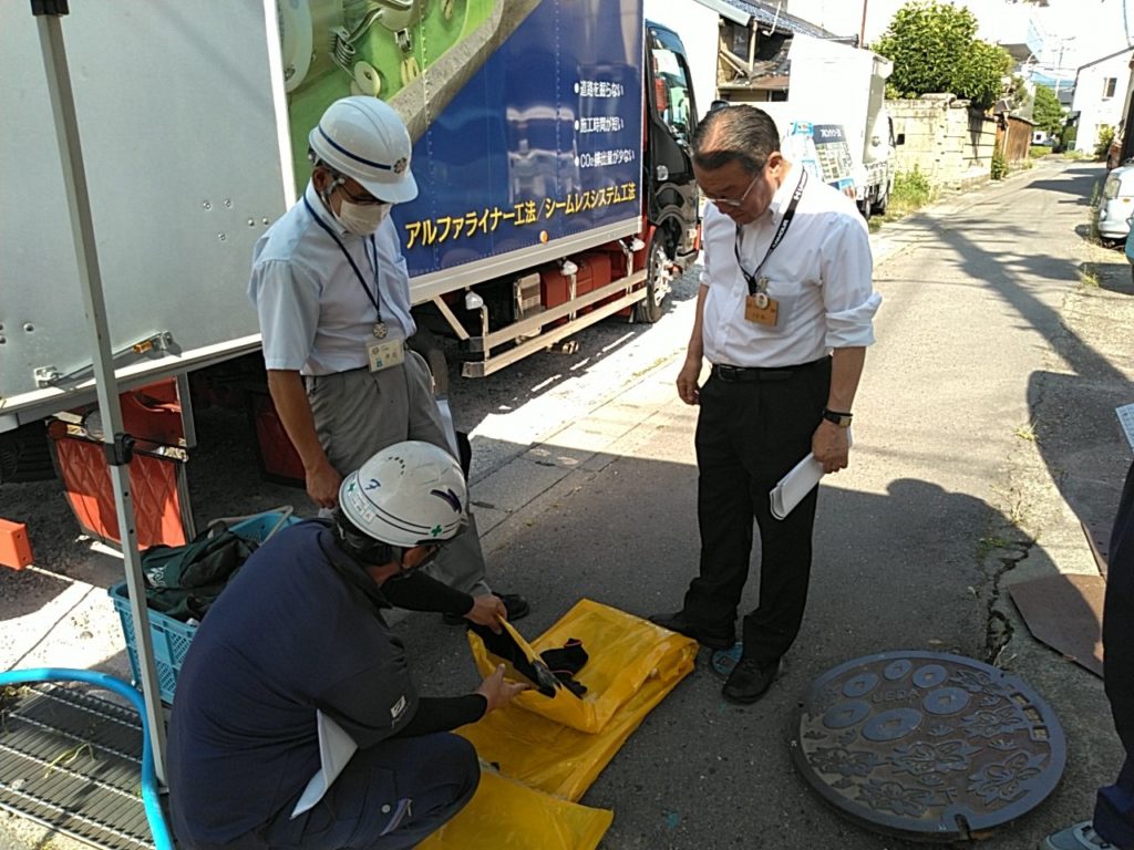 上田市長による更生工事見学会